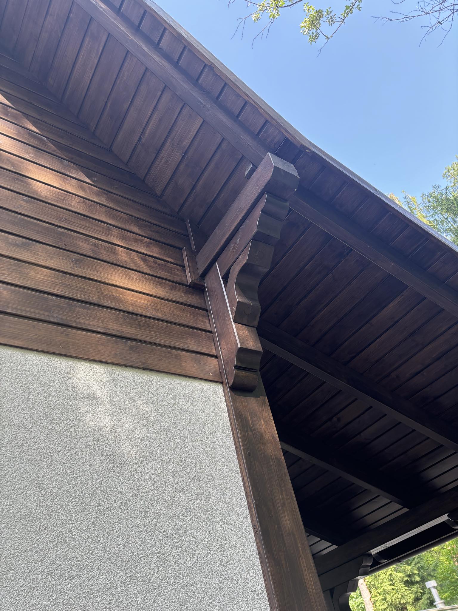 W tym wypadku dach został pokryty gontem bitumicznym, oraz cały dach jest deskowany.
