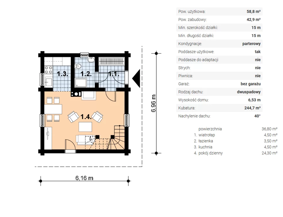 | Wymiary domu | 6,96 x 6,16 m |
