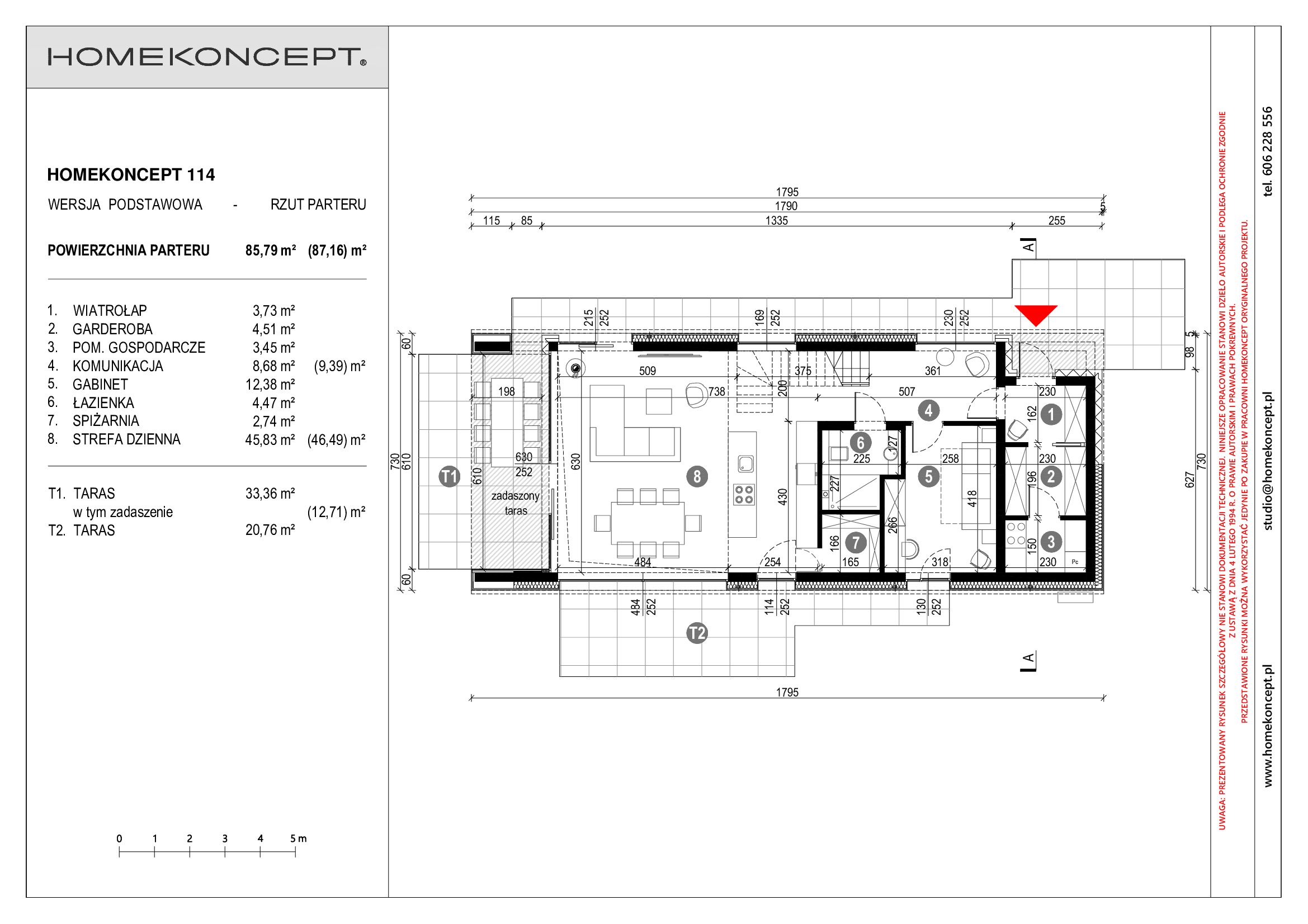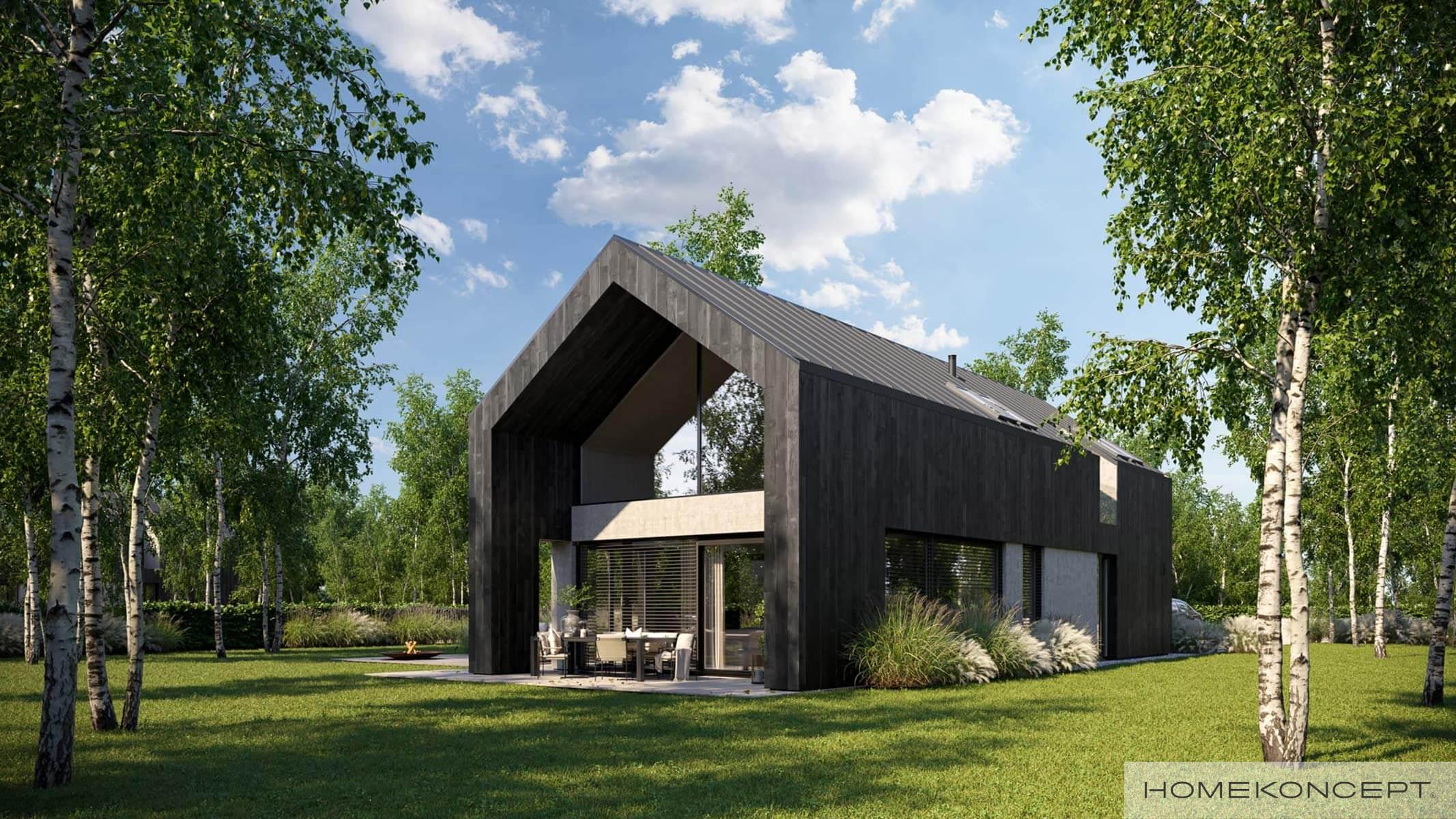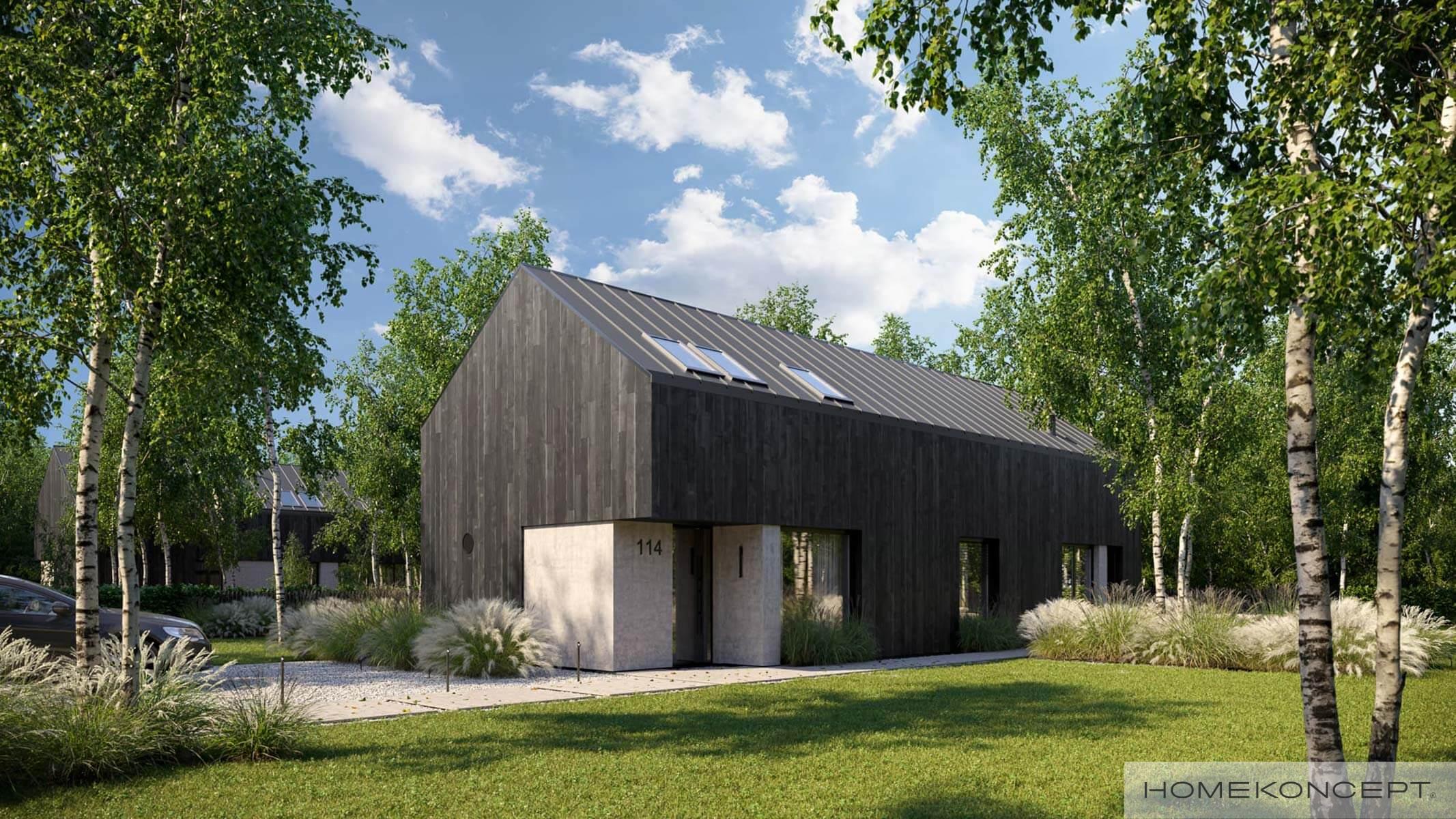 Homekoncept 114 projekt domu z tarasem dom drewniany szkieletowy firma Mildo Pomorze