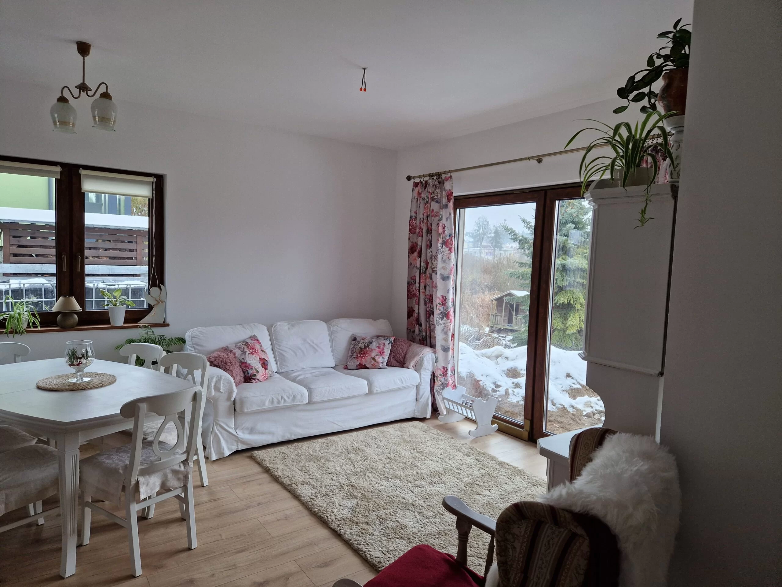 Wszystkie pomieszczenia są bardzo dobrze doświetlone dzięki dużym oknom.