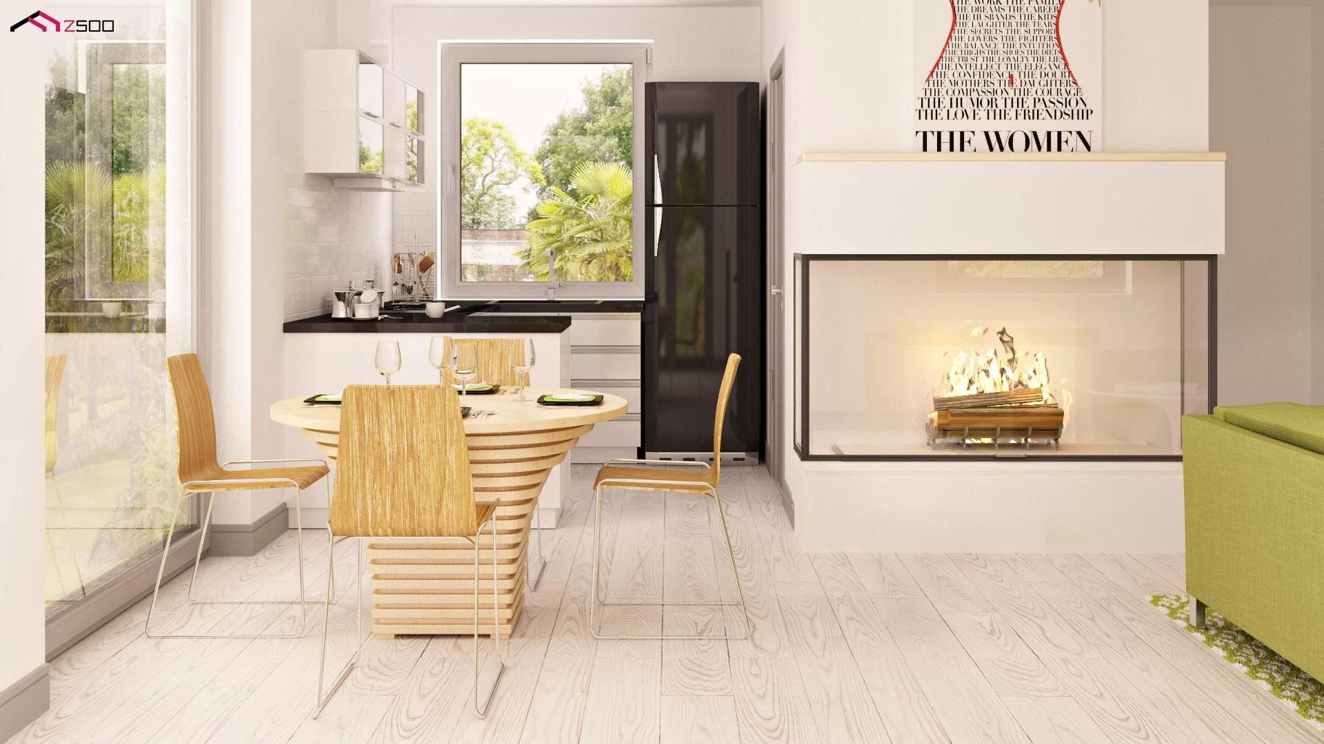 Na parterze mamy przestronny salon z aneksem kuchennym, sypialnie/gabinet, pomieszczenie gospodarcze, łazienkę. Zaś na poddaszu mamy 3 pokoje oraz łazienkę.