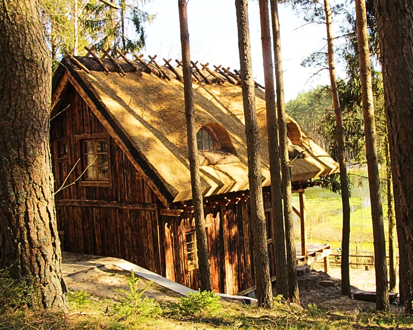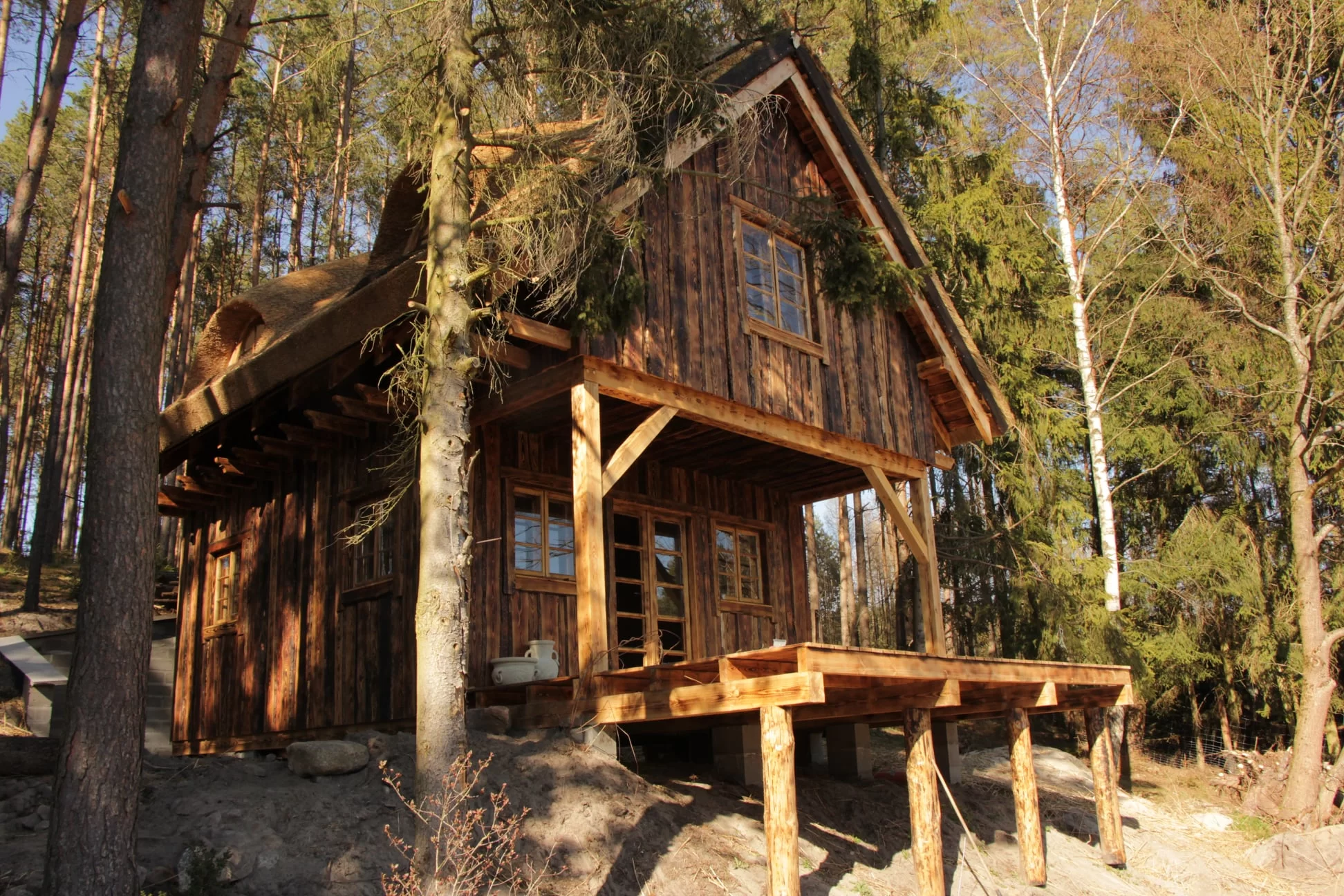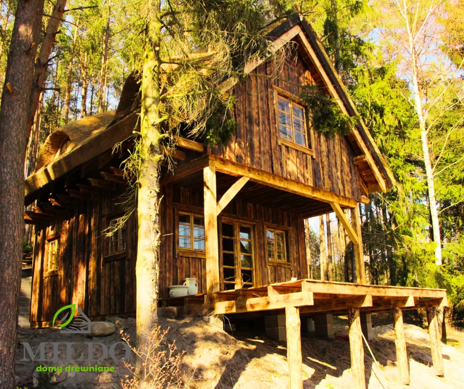 Nowy/stary domek drewniany w klimacie leśnym w Borach Tucholskich. Teksas jest już w pełni gotowy do zamieszkania.