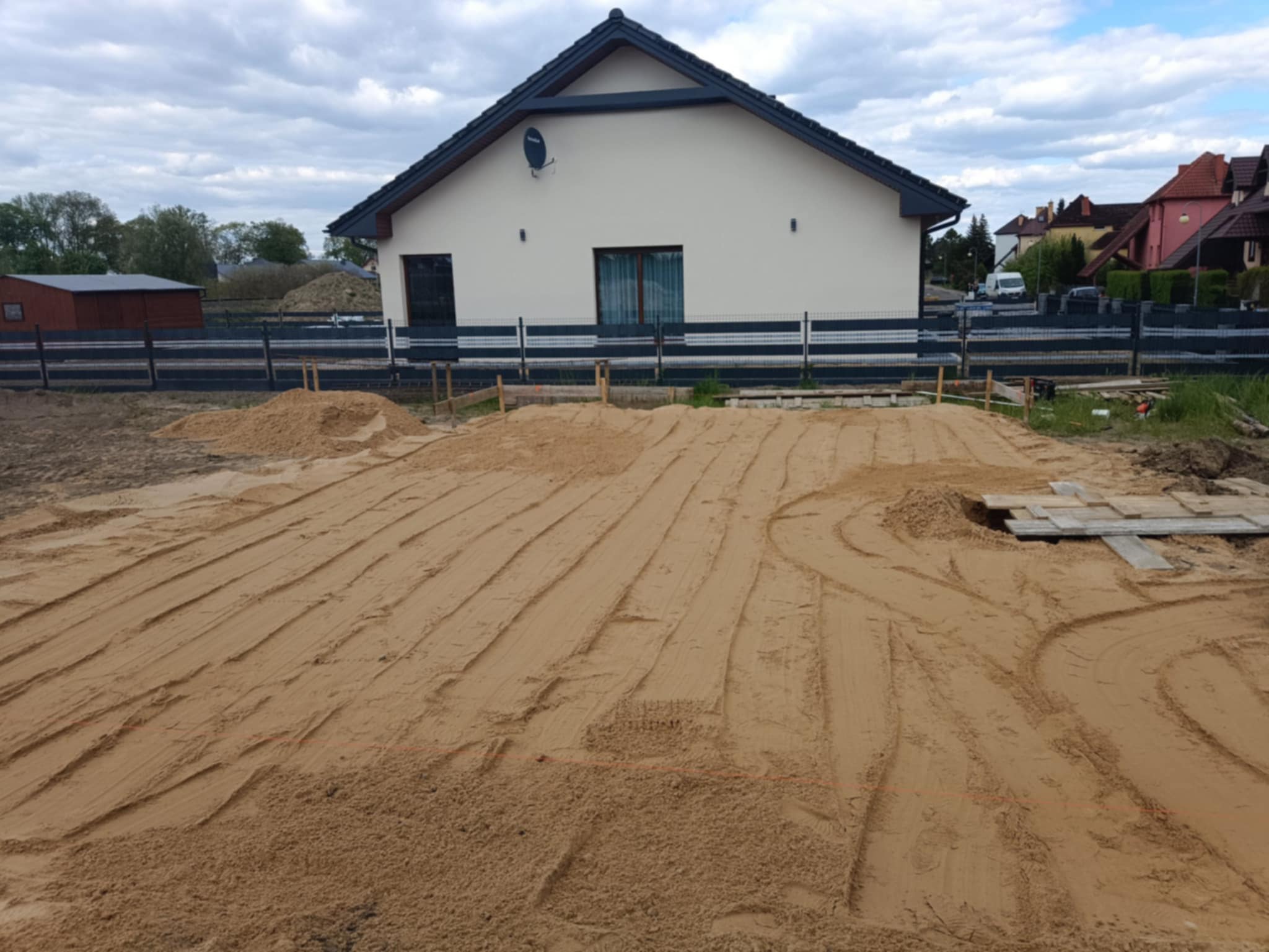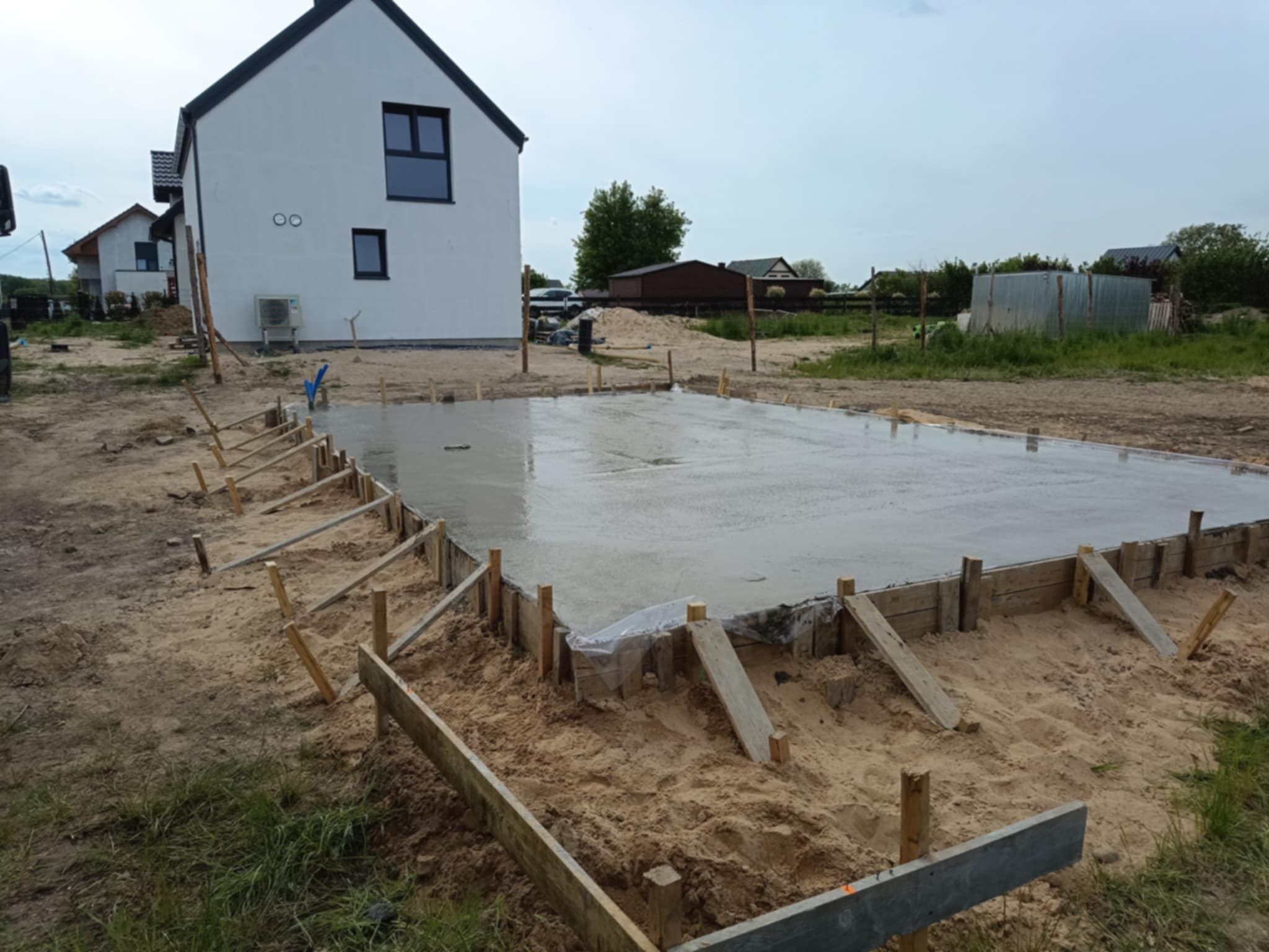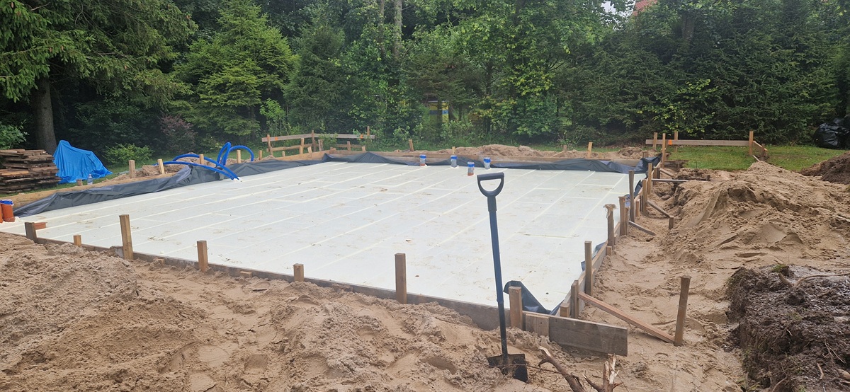 - Wyznaczenie budynku na działce, wykop, szalowanie, zbrojenie, wyprowadzenie mediów.